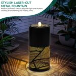 Setting up the 23.6″ H Modern Metal Cutout Geometric Patterns Outdoor Water Fountain is quick and simple. It comes with a submersible pump that circulates the water, ensuring smooth operation without any hassle. Just add water to the basin, connect the pump, and plug it in—the fountain will start operating, providing a calming water flow and gentle lighting immediately.