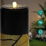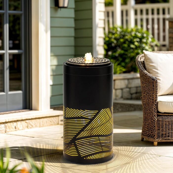 As the sun sets, the LED lights built into the 23.6″ H Modern Metal Water Fountain illuminate the cascading water, creating a soft, glowing effect that enhances the beauty of your outdoor space after dark. The integrated LED lighting highlights the intricate geometric patterns, casting ambient light and creating a mesmerizing visual display. These lights not only add a dramatic touch to your garden fountain but also allow you to enjoy its beauty well into the evening.