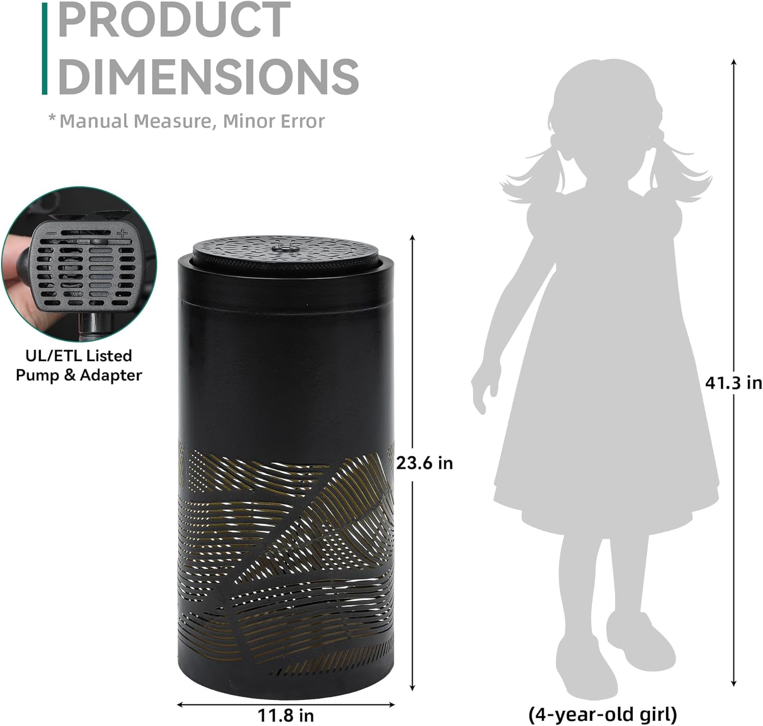 Made from high-quality metal, the 23.6″ H Modern Metal Water Fountain is designed to withstand the elements. Whether it’s exposed to sunlight, rain, or wind, the durable construction ensures the fountain will continue to operate smoothly and maintain its sleek appearance over time. The weather-resistant metal ensures that the fountain is built to last, providing you with years of enjoyment and tranquility.