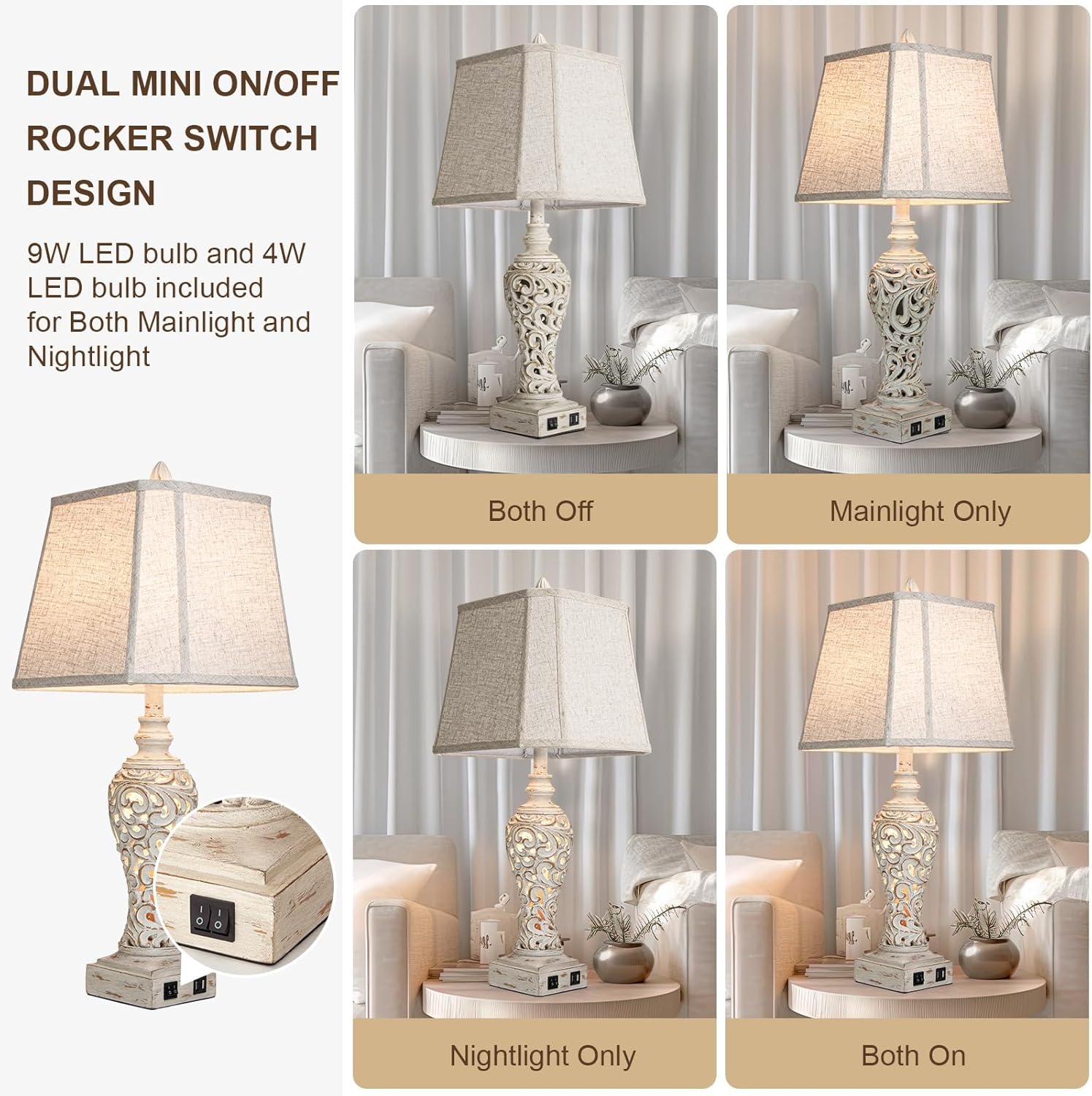 Illuminate Your Space with Style and Function: 28.5″ Table Lamps Set of 2 with USB and Nightlight