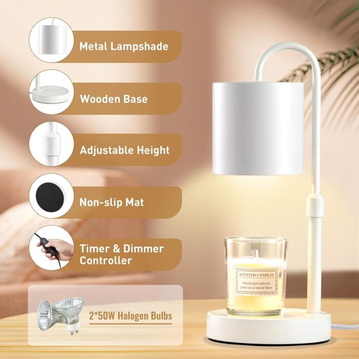 If you’re a candle lover looking for a cleaner, safer, and more elegant way to enjoy your favorite scents, the Briever Candle Warmer Lamp with Timer and Dimmer is the perfect addition to your home. Featuring a sleek white finish, an adjustable height design, and a natural wooden base, this electric candle lamp combines function with aesthetics to elevate both your space and your candle experience.