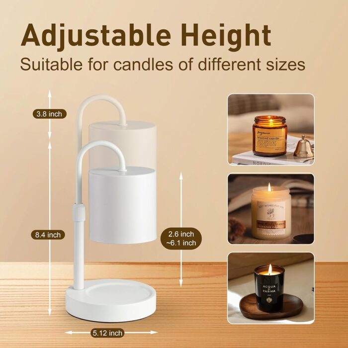 The adjustable height feature accommodates various candle sizes (up to approximately 6 inches tall), ensuring optimal proximity to the heat source for consistent wax melting.