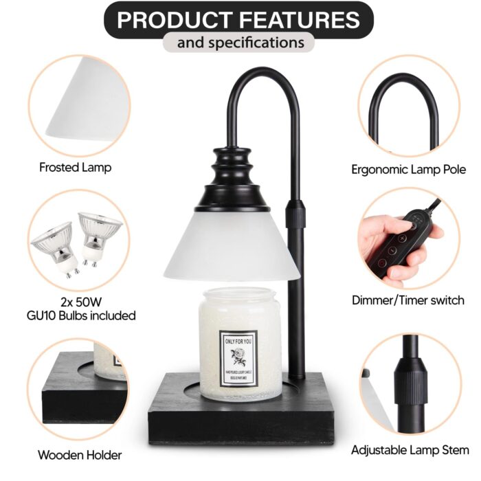 The Candle Warmer Lamp for Large Jar Candles is a smart, stylish alternative to traditional burning, combining safety, elegance, and convenience. With a dimmable 3000K light, built-in timer, and an included White Tea & Lychee candle, it transforms any room into a fragrant sanctuary—without smoke or flame. Whether you’re gifting or indulging yourself, this candle warmer is a beautiful way to bring light and luxury into daily life.