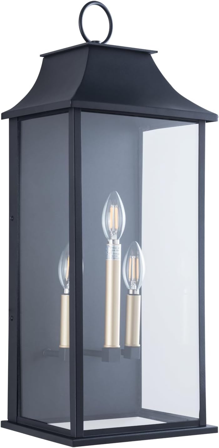 Standing at an impressive 25 inches tall, the Lawyettle Outdoor Wall Lantern makes a statement wherever it’s installed. Its elegant lantern-style silhouette, combined with a sleek matte black finish, brings a touch of traditional charm to porches, garages, entryways, and patios. The clear glass panels offer full visibility of the bulbs, creating a bright and inviting atmosphere while adding a vintage flair.