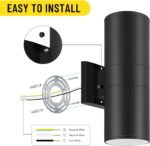 Each fixture in this 2-pack emits light from both the top and bottom, creating a balanced lighting effect that enhances visibility and ambiance. This up-and-down light pattern not only adds depth and texture to your exterior walls but also helps highlight architectural features.