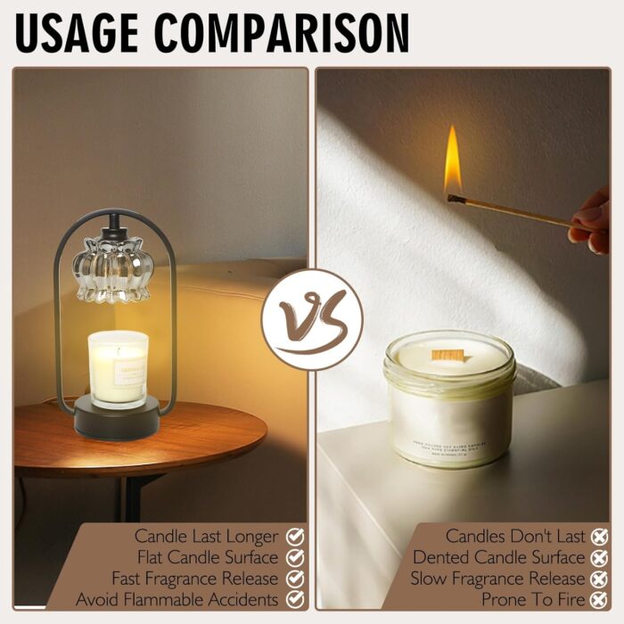 The Nearus Candle Warmer Lamp takes candle enjoyment to a new level by offering a safer and more efficient way to melt wax and release fragrance. Unlike traditional candles, which burn with an open flame, this electric warmer uses gentle heat to melt the wax from the top down. The result is an even, controlled melting process that preserves the life of your candles and maximizes their fragrance. No more worrying about soot, smoke, or burnt wicks—just pure, consistent enjoyment.