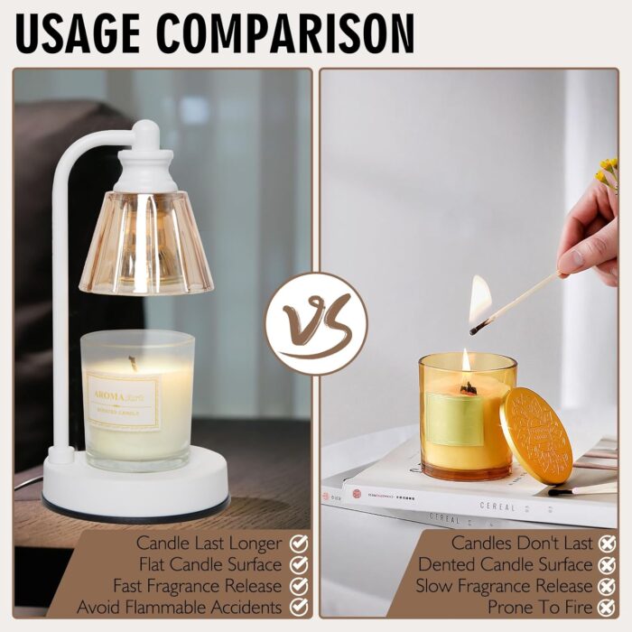 Candle warmers are becoming increasingly popular for several reasons. Traditional candles often create a mess with wax spills, and the open flame poses a fire hazard, making some people hesitant to light candles in their homes. The Nearus Candle Warmer Lamp eliminates these concerns. It melts the wax of your favorite jar candles without the need for an open flame. This means you can enjoy the warm, inviting glow and delightful scent of your candles, safely and mess-free.